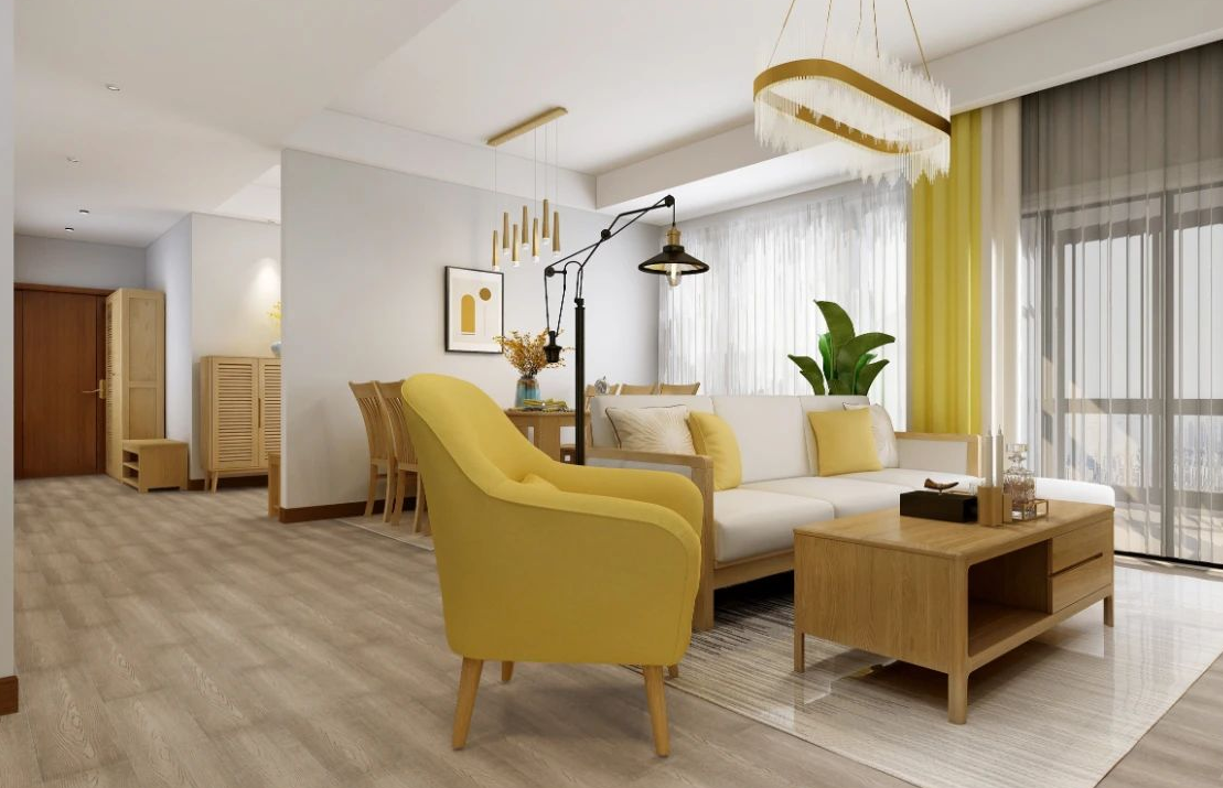 将木地板铺入室内,是一场自然诗意与烟火生活的完美邂逅,让人走进家门,便沉浸在一片清新与雅意中。